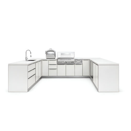 Features: Four-burner grill, integrated sink, large prep area, concealed storage